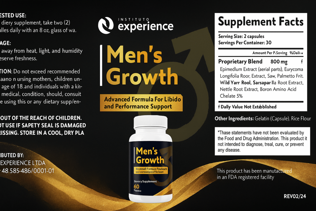 • Men’s Growth is a comprehensive male enhancement formula designed to address multiple aspects of masculine vitality through a sophisticated blend of natural compounds. Unlike single-ingredient testosterone boosters or basic performance supplements, Men’s Growth takes a systematic approach to male optimization by targeting three key areas simultaneously: hormonal balance, circulatory health, and physical stamina.